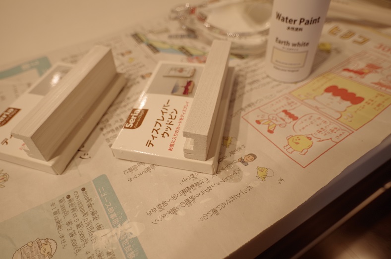 同じくセリアで水性塗料と刷毛を買ってきまして。