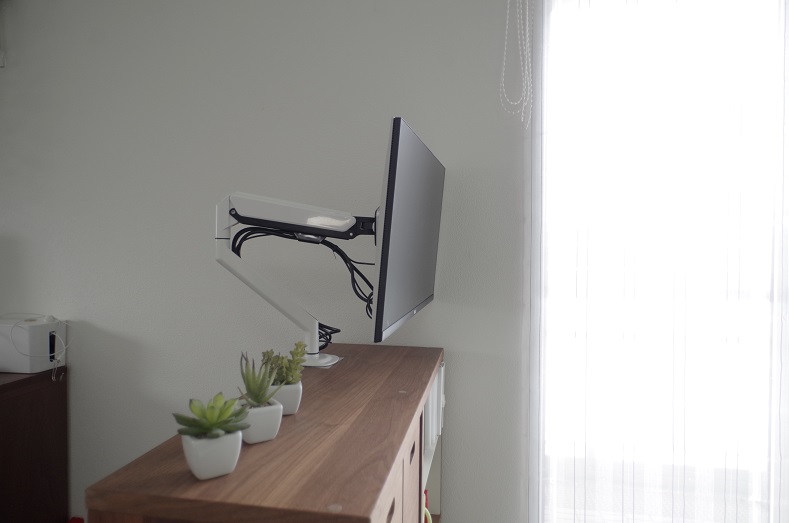 目立ちにくい白で、比較的リーズナブルなモニターアームだとこれ一択ですかね(知らんけど)。