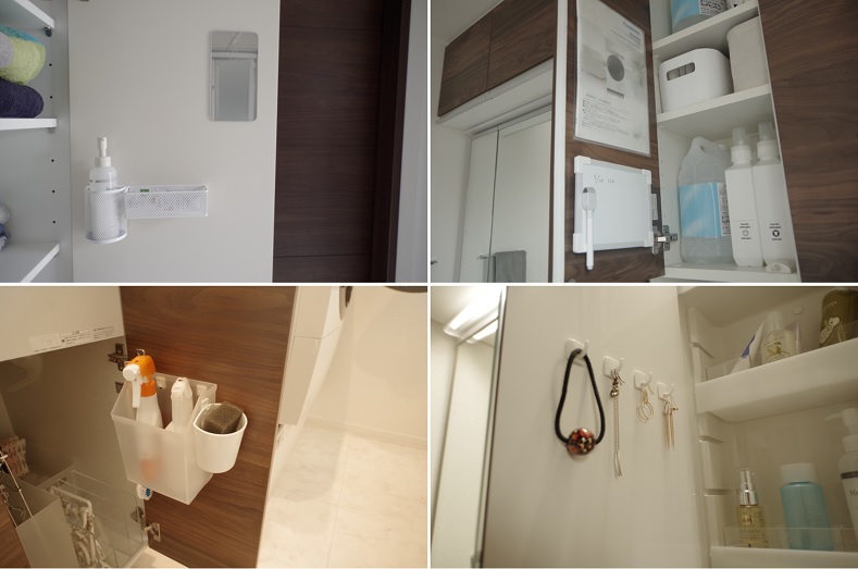 いやまぁ、オーソドックスな収納法ではあるんですが、やっぱり扉裏を使えるとモノの出し入れはかなり便利になりますよね。