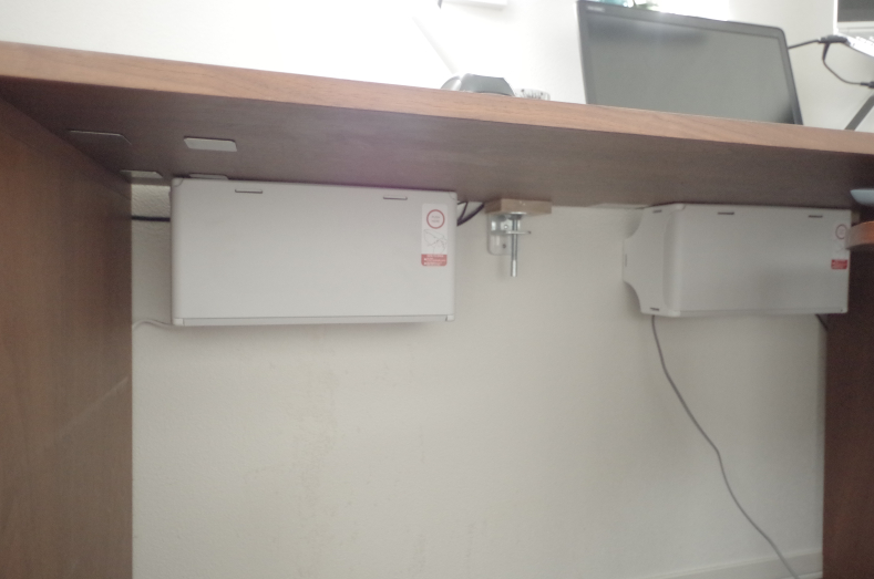 デスク上がゲーブルや電源でゴチャゴチャしないように、デスク下にケーブルボックスを2つ設置しています。