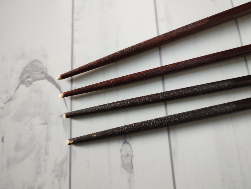 出かけた先でフラッと入った雑貨屋さんで買ったので、別にこだわりのお箸でもなんでもないですけど、やはり剥げていないお箸は良いものです(喜びのレベルが低い)。