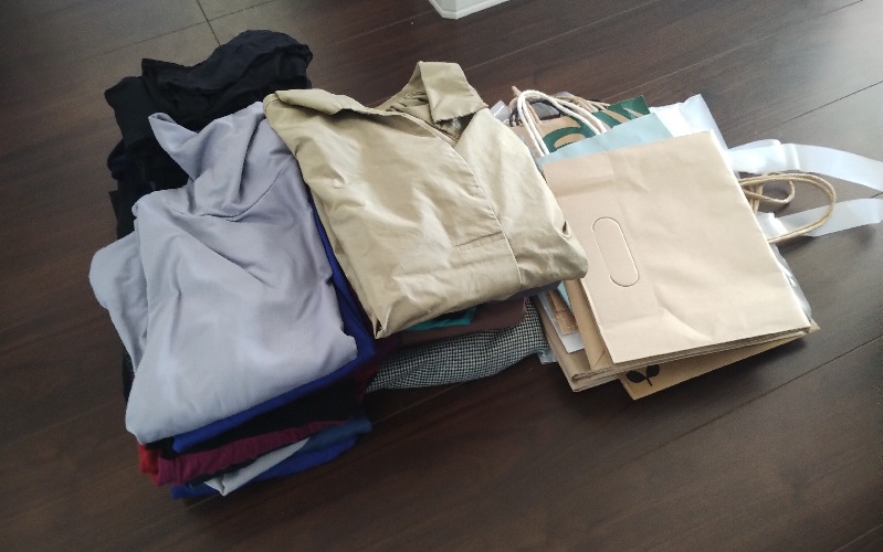 もう数年着てない衣類と、いつの間にかごっちゃりたまっていた紙袋。